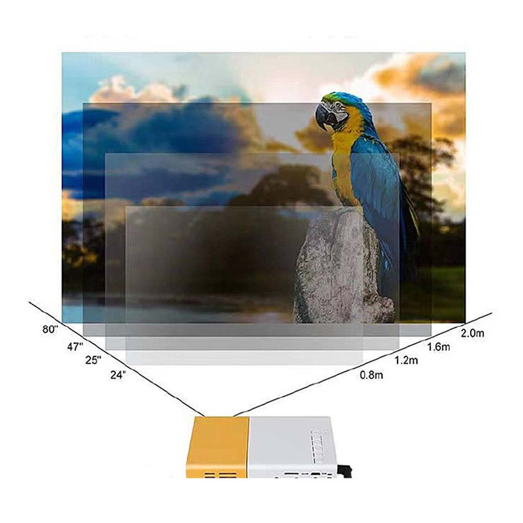 مینی ویدیو پروژکتور مدل P900 Android ios یک پروژکتور پرتابل و قابل حمل است. این مدل از مینی ویدیو پروژکتور دارای لنز ارتقاء یافته بوده، و قابلیت اتصال به گوشی های موبایل اندروید و آیفون را دارد. همچنین، این دستگاه دارای دفترچه راهنمای ارجینال استفاده از دستگاه بوده و با توجه به ابعاد کوچک و کیفیت بسیار خوب تصویر در عین قیمت مناسب قابل استفاده در کلاس های آموزشی و جلسات ارائه، در محیط خانه، در کمپ ها و طبیعت گردی، بازی های کامپیوتری و مهمانی های دوستانه میباشد. نور ویدیو پروژکتور مدل P900 Android ios بصورت LED است و قابلیت ارتباط از طریق درگاه های مختلفی از قبیل HDMI / USB / DC / Micro USB / AV / AUDIO را داشته و بنابراین می تواند به دستگاه های مختلفی همچون لپتاپ، تبلت، گوشی های اندروید و آیفون و نیز کنسول های بازیهای کامپیوتری اتصال یابد. برق این دستگاه میتواند از طریق آداپتور DC – 12V – 2A یا از طریق پاوربانک (شارژرهای قابل حمل) 12V – 2A تامین شود. این مینی ویدیو پروژکتور دارای باتری لیتیوم نیز بوده، تا رزولوشن 1920x1080 پیکسل را پشتیبانی نموده و قابلیت تنظیم فوکوس تصویر بصورت دستی را نیز دارد. مناسب ترین فاصله برای مشاهده تصاویر برای این دستگاه 0.8-1.6m است و میتواند تا فاصله 3 متری را نیز برای مشاهده تصویر پشتیبانی کند.