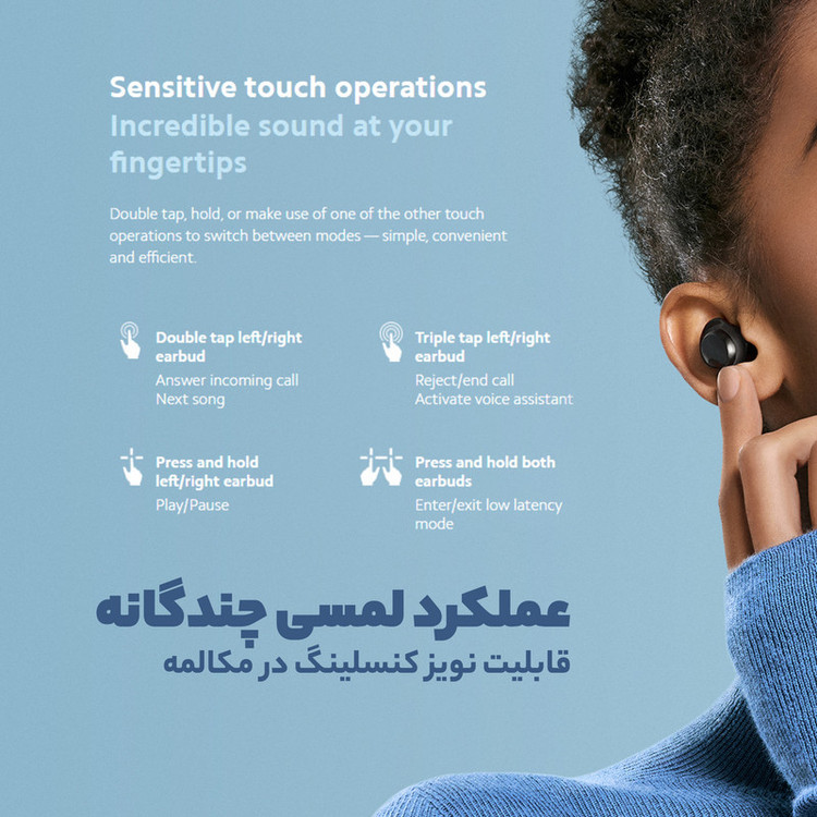 وزن بسیار کم محفظه شارژ : 36 گرمی | قابلیت های تاچ در سری گوشی ها با عملکردهای مختلف | فناوری Low Latency Mode برای گیمینگ | پورت USB Type C