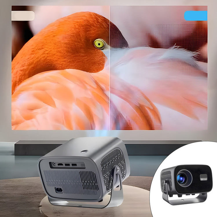 ویدئو پروژکتور مدل HY310 یک ویدئو پروژکتور کوچک با کیفیت بالا، وزن سبک و قابل حمل آسان برای استفاده در مکان مختلف مناسب است. این ویدئو پروژکتور میتواند تصاویر را با 4K HD نمایش دهد. 4000 لومن ANSI (تبلیغ شده به عنوان 6000 لومن) بر روی صفحه نمایش تا 200 اینچ، حتی در محیط های با نور متوسط، پخش می شود.تصاویر پخش شده توسط دستگاه کاملا واضح بوده و رنگ ها به صورت طبیعی و درخشان دیده می شوند. این پروژکتور دارای سیستم عامل Android 11.0 است و بدون نیاز به سیستم لپ تاپ و یا کامپیوتر میتواند مستقیما به اینترنت وصل شود تا بتوانید به راحتی بیش از 4000 برنامه یا محتوای مورد نظر خود را دانلود کنید.با وضوح تصویر بالا به شما تصاویر واضح ارائه میکند. با طراحی زیبا و مدرن خود به شما تجربه سینمایی فوق العاده در خانه می دهد، فیلم تماشا کنید و از مهمانی ها لذت ببرید. حافظه رم 8 گیگابایت و رام 1 گیگابایت میباشد Wi-Fi داخلی و بلوتوث برای پخش بیوقفه محتوا، بهصورت بیسیم به دستگاههای خود متصل شوید. میتوانید گوشی های اندرویدی و آیفون خود را به طور مستقیم و بدون سیم به آن متصل کنید و تصویر دیوایس خود را روی پرده یا دیوار نمایش دهید (این قابلیت برای ویندوز نیز موجود هست فوکوس خودکار و تصحیح کیستون باعث شده که با تنظیم بدون دردسر و با فوکوس خودکار و تنظیم تصویر از ان لذت ببرید. با وزن تنها 1.26 کیلوگرم، HY310 به راحتی در یک کوله پشتی قرار می گیرد تا قابلیت حمل نهایی را داشته باشد. تا 50000 ساعت عمر لامپ سالها لذت را تضمین می کند. دارای بلندگوهای دوگانه استریو که باعث میشه با بلندگوهای داخلی در صدای غنی غوطه ور شوید.